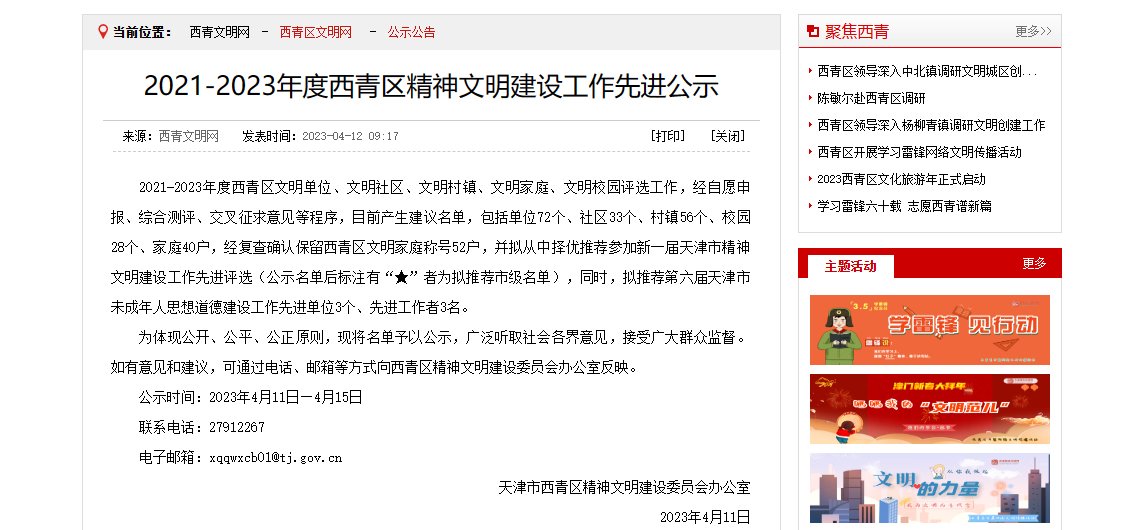 近日,天津市西青區精神文明建設委員會辦公室公示了2021-2023年度天津市西青區文明單位,天津懷仁制藥有限公司榮獲天津市西青區“文明單位”稱號!