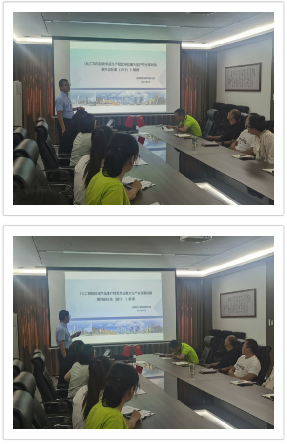 2024年9月6日上午,我公司組織中層管理干部及關鍵崗位人員共同學習了《天津市化工和危險化學品生產經營單位重大生產安全事故隱患判定標準實施指南》 、《天津市安全生產治本攻堅三年行動方案2024-2026》和《西青區安全生產治本攻堅三年行動方案2024-2026》等相關文件,傳達了天津市應急局及西青區應急局的文件精神,要認真落實黨中央、國務院及市委、市政府的部署要求,進一步夯實安全生產工作基礎,從根本上消除事故隱患,有效防范遏制生產安全事故。